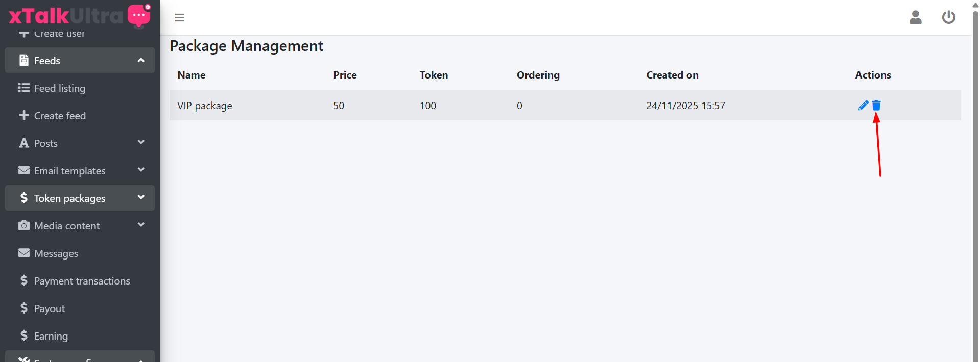 Go to Packages > Listing and click on the Trash can icon for the respective package to delete it.