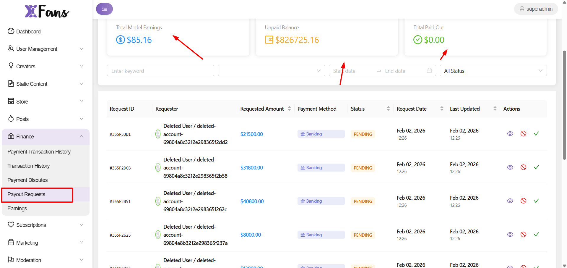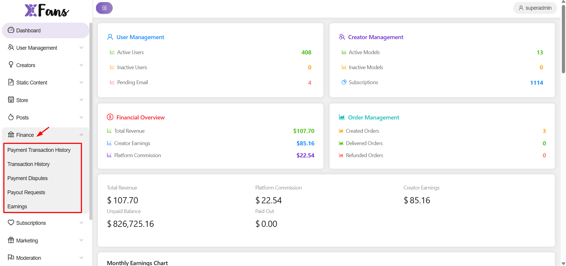 xFans comes with a comprehensive payment history to help you monitor all the site-wide transactions. Go to Finance