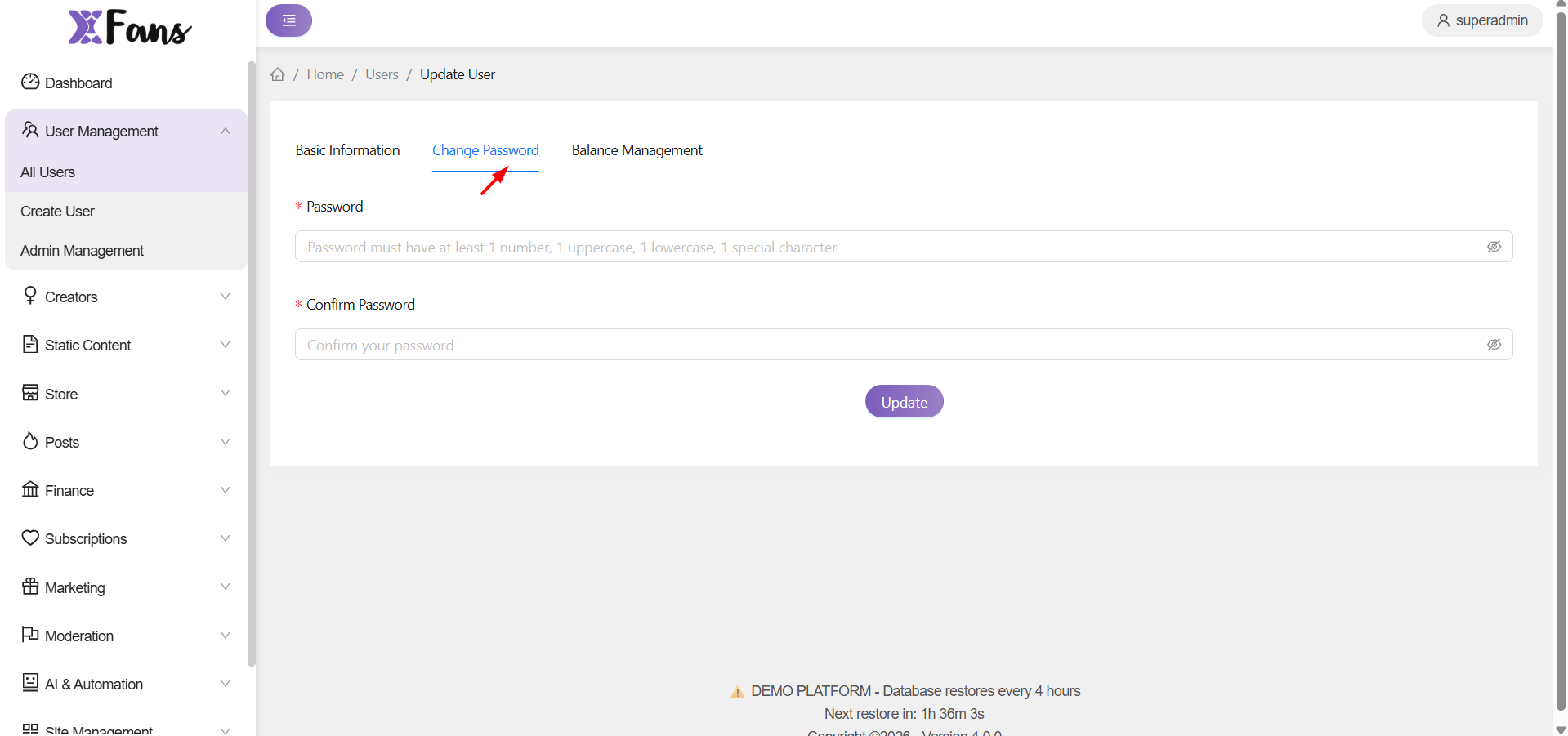 You can do this from the User list > New user option. Fill in the required details before clicking on Submit.