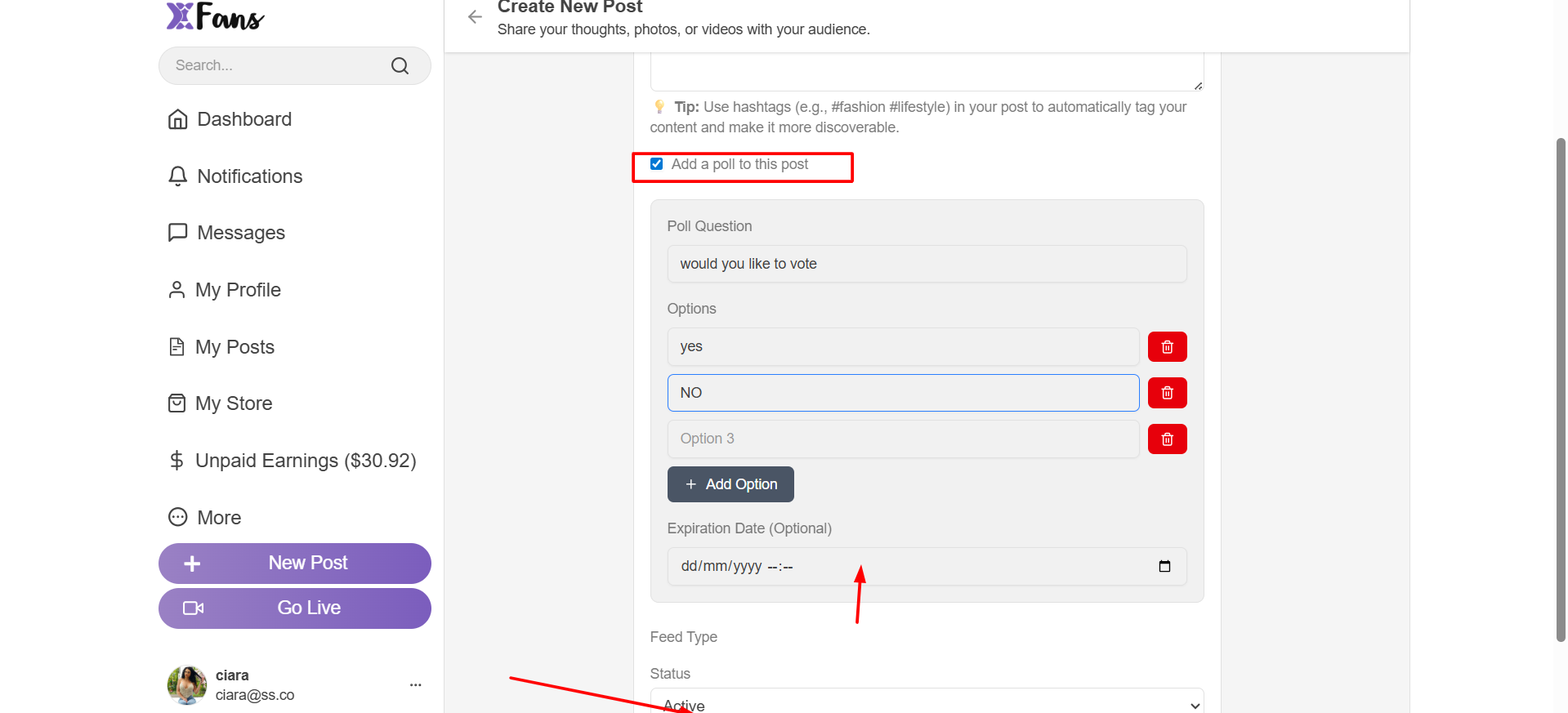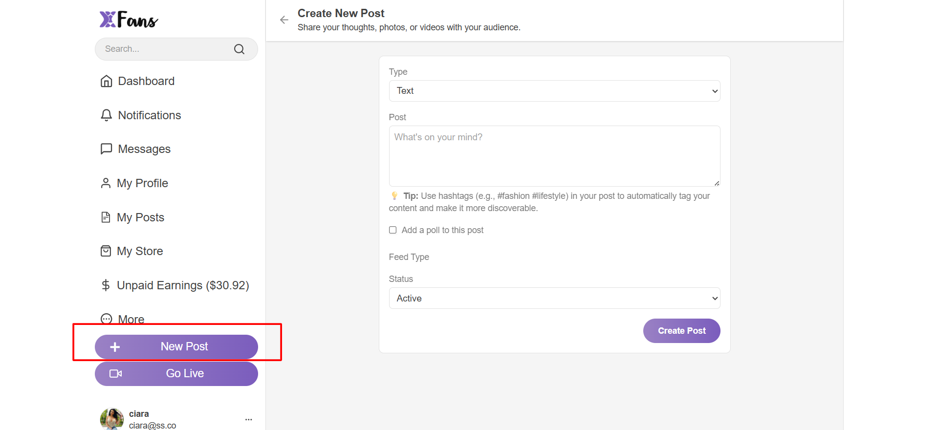 - Select the type of feed that you want to create. (Text-based, photo, and video feeds)